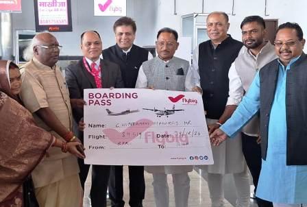 विमान टेकऑफ़ को वाटर सेल्यूट दिया गया। आज प्रारंभ हुई विमान सेवा के पहले यात्री के रूप में सांसद चिंतामणि महाराज सपत्नीक सवार हुए, जिनको मुख्यमंत्री साय ने बोर्डिंग पास देकर कहा कि आज आपने इतिहास बना दिया। आप इस रूट के पहले यात्री है, आपको शुभकामनाएं। इस अवसर विधायक राजेश अग्रवाल, प्रबोध मिंज, रामकुमार टोप्पो, मुख्यमंत्री के सचिव बसवराजु, संचालक विमानन विभाग संजीव झा, फ्लाई बिग कंपनी के सीएमडी संजय मांडविया उपस्थित थे।