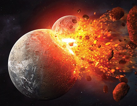 वैज्ञानिक मानते आए हैं कि चंद्रमा का निर्माण एक प्रोटोप्लेनेट थिया के पृथ्वी से टकराने से हुआ था। यह टक्कर की पृथ्वी की प्रारंभिक अवस्था में (लगभग 4.5 अरब वर्ष पूर्व) हुई थी। अब वैज्ञानिकों के एक समूह को पृथ्वी के मेंटल में दफन दो महाद्वीपों के आकार की चट्टानें मिली हैं जो संभवत: उक्त प्रोटोप्लेनेट थिया के अवशेष हैं।